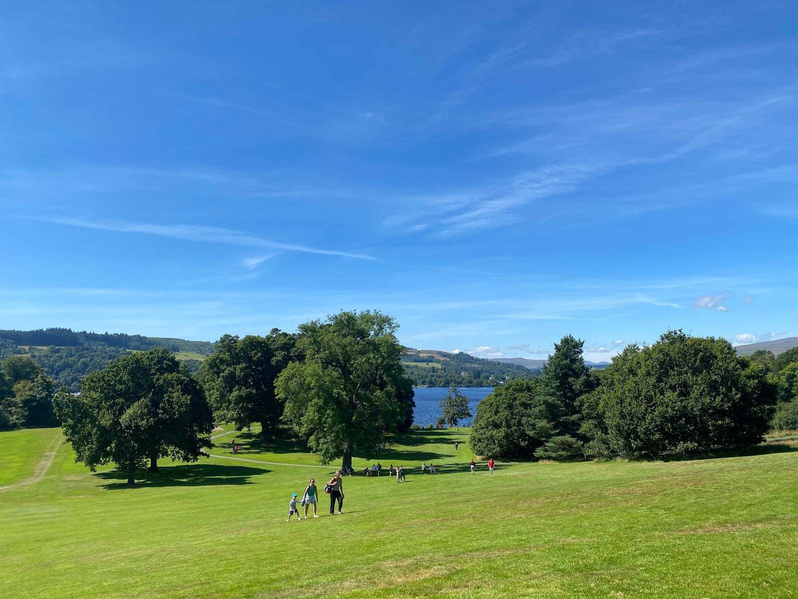 Next, we reboarded the bus and began our drive to our second stop, which was Loch Lomond. We enjoyed a delicious lunch and sat on the grassy hills overlooking the water. After we finished eating the pre-packaged lunch we were provided, we took a walk down to the lake just to see the water. It was fun to see all the kids and families swimming and spending time in the water.